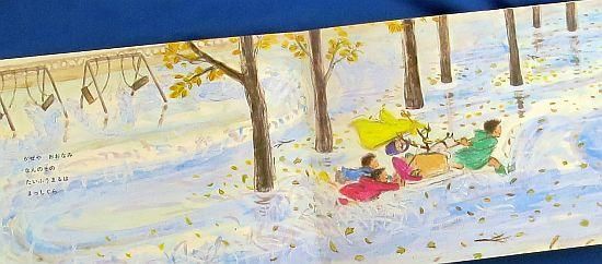 <内容紹介>おばあちゃんの家に遊びにきた日、3人の兄妹は台風の中を家に帰ることになりました。滝になった歩道橋の階段を登り、海になった公園で船遊び。レストランの店先の人形は倒れ、ショーウィンドーのなかみも飛び散っています。大喜びしながら家に着くころには、風雨もおさまり夕焼けも見えてきました。子どもが感じる台風の日のわくわくする気持をストレートに描いています。