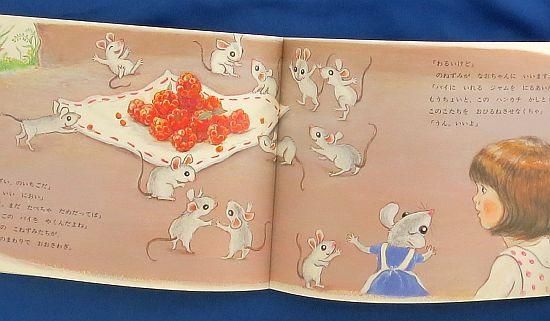 <内容紹介>なおちゃんが眠るときにいつもにぎりしめている大切なハンカチが、ベランダから風で飛んでいってしまいました。追いかけていったなおちゃんは、のねずみがハンカチを使って野いちごを運んでいるのを見つけます。なおちゃんが私のハンカチだと言っても、のねずみは返してくれません。のねずみ親子との交流をとおして、なおちゃんの成長をさわやかに描いたファンタジー絵本です。