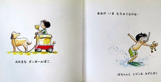 きみが いま むちゅうなのは…ソファに ちらばる どうぶつビスケット、いたいところに はる ばんそうこう、ひもの ついた くつ、びしょぬれの いぬの におい。そして…おおきな ダンボールばこ。大人から見るとちっぽけな物に、子どもたちは目を輝かせ、夢中になる。先のことを心配することも、明日のために急ぐこともしない。そんな「きみの時間」「きみの目線」は今このときだけのもの。きみの、その瞬間を、大切にしてほしいというメッセージがつまった感動絵本。