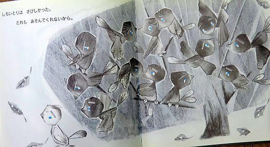 <内容紹介>白い鳥の群れの中に生まれた黒い鳥と、黒い鳥の中に生まれた白い鳥。黒い鳥はいつもつつかれ、白い鳥は誰からも遊んでもらえなかった。山の向こうに自分と同じ色の鳥がいると聞き、ふたりは互いに飛び立つが…。
