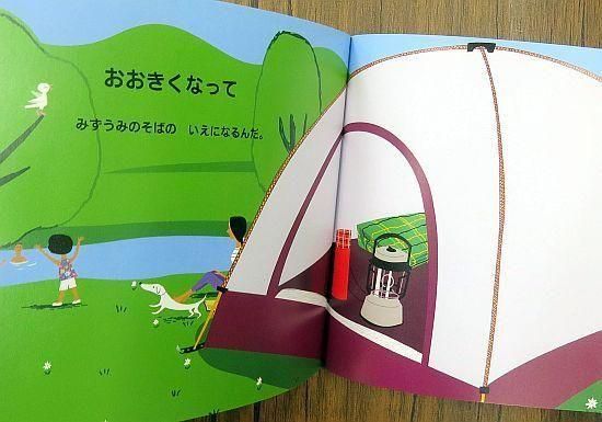<内容紹介>小さく小さくたたまれてキャンプ場にやってきたモノたちが、大きく大きくなって、大活躍します。パラソル、テーブル、ハンモック、ボート、テント……アウトドアで使うモノたちがつぎつぎと登場。それぞれが、おおはりきりで「みんな おいで」とよびかけてきます。夏休み、大空の下へ、気持ちのよい緑のなかへ、涼やかな湖へ、出かけていきたくなることでしょう。