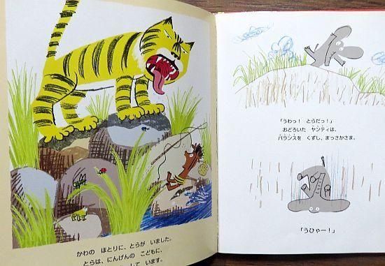 チョウを追って谷へ出た所で、トラに襲われかかった人間の子どもを見つけました。